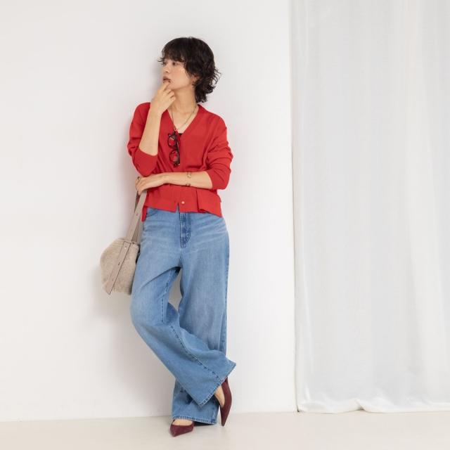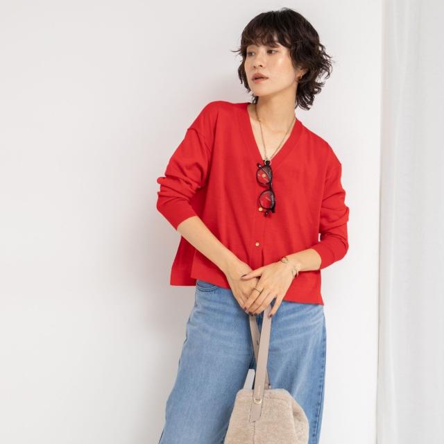 ノーリーズ(NOLLEY’S)/《手洗い可能》《アンサンブル対応》18G天竺ゆったりVネックカーディガン