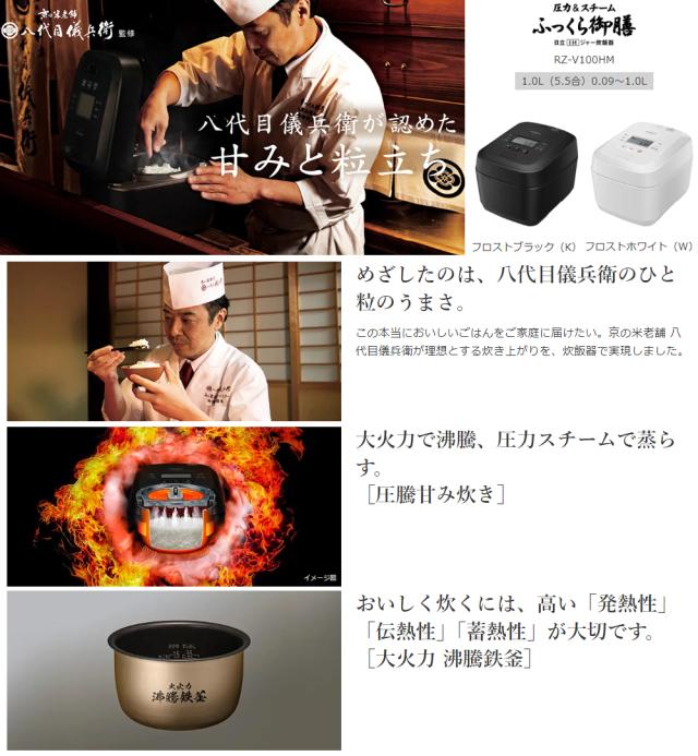 RZ-V100HM-W(フロストホワイト) 圧力&スチーム IHジャー炊飯器 ふっくら御膳【1.0L(5.5合)】
