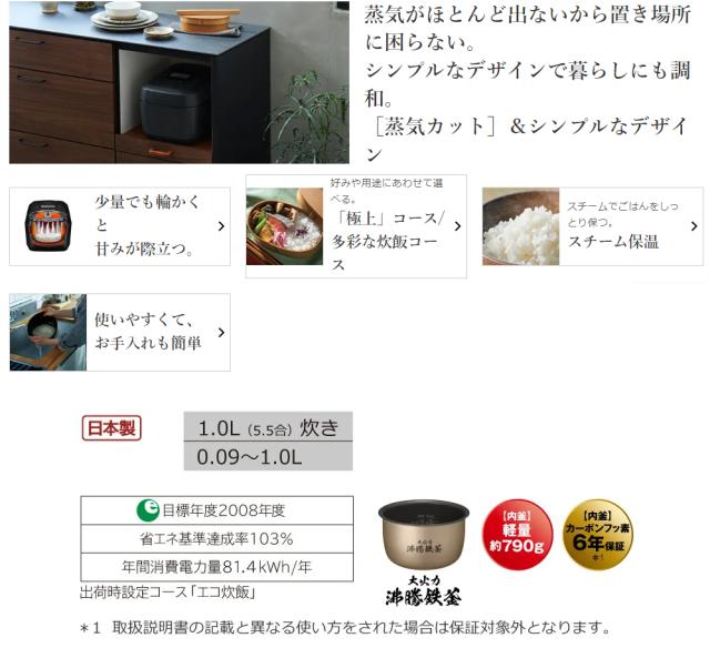 RZV100HM 大火力で沸騰、圧力スチームで蒸らす「圧騰甘み炊き」