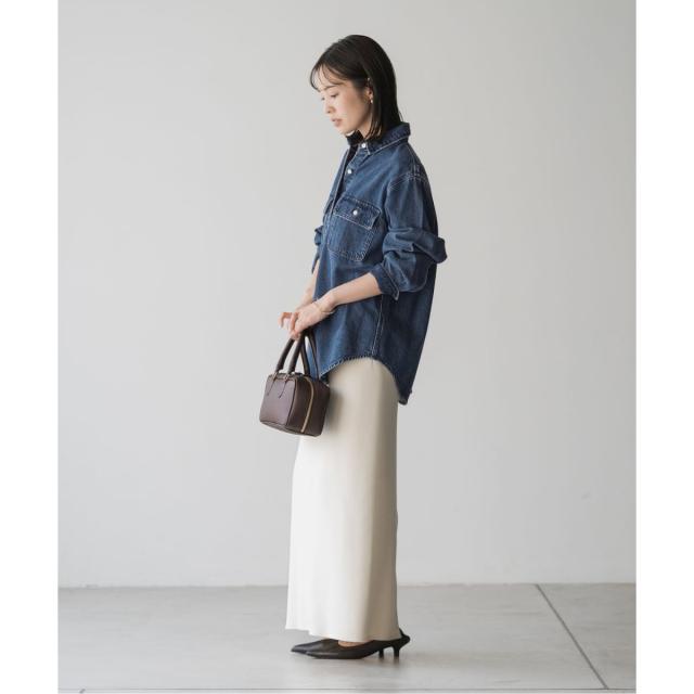 【NEEDBY heritage(ニードバイヘリテージ)】 「日本のデニム産業の伝統や技術を守り、次世代へ承継したい」という思いから生まれたブランド。アダムエロペ(ADAM ET ROPE’)/オンブレチェックシャツ。マーリエ ル カセット(Maglie le cassetto)/《M Maglie le cassetto×吉田理紗》凛と“サマみえ”ペプラムブラウス。