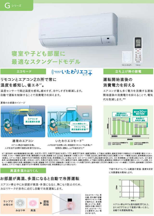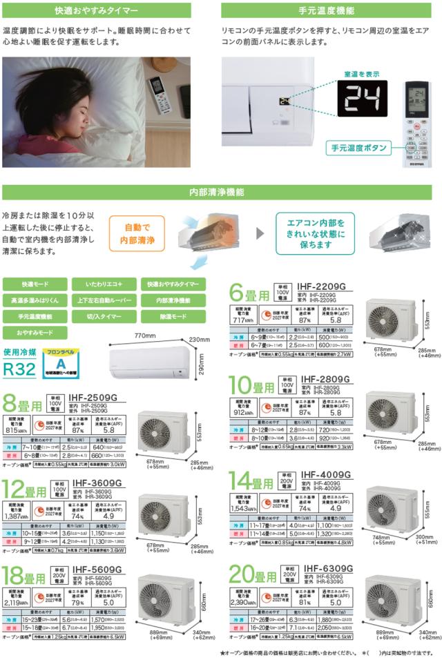 IHF-2209G 2025年モデル スタンダードエアコン Gシリーズ 6畳 2.2kw