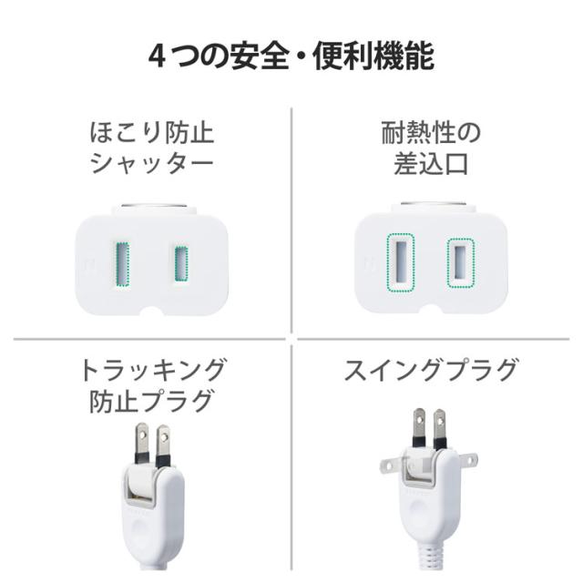 エレコム 延長コード 電源タップ コンセント 2.5m 1個口 マグネット ホワイト(5個セット)[OA商品]