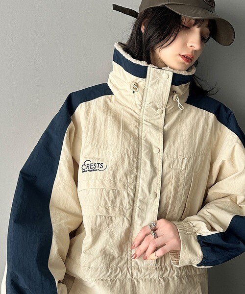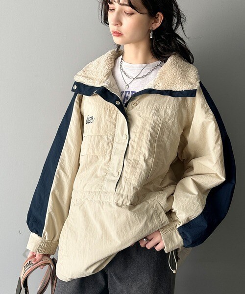 クラシカルエルフ(Classical Elf)/《JaVa ジャバコラボ》主役を飾る大人レトロ配色。裏キルティング配色レトロハーフジップブルゾン
